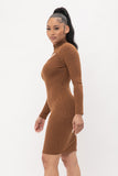 Knit Sweater Rib Front Cut Out Pullover Style Mock Neck Long Sleeve Midi Dress